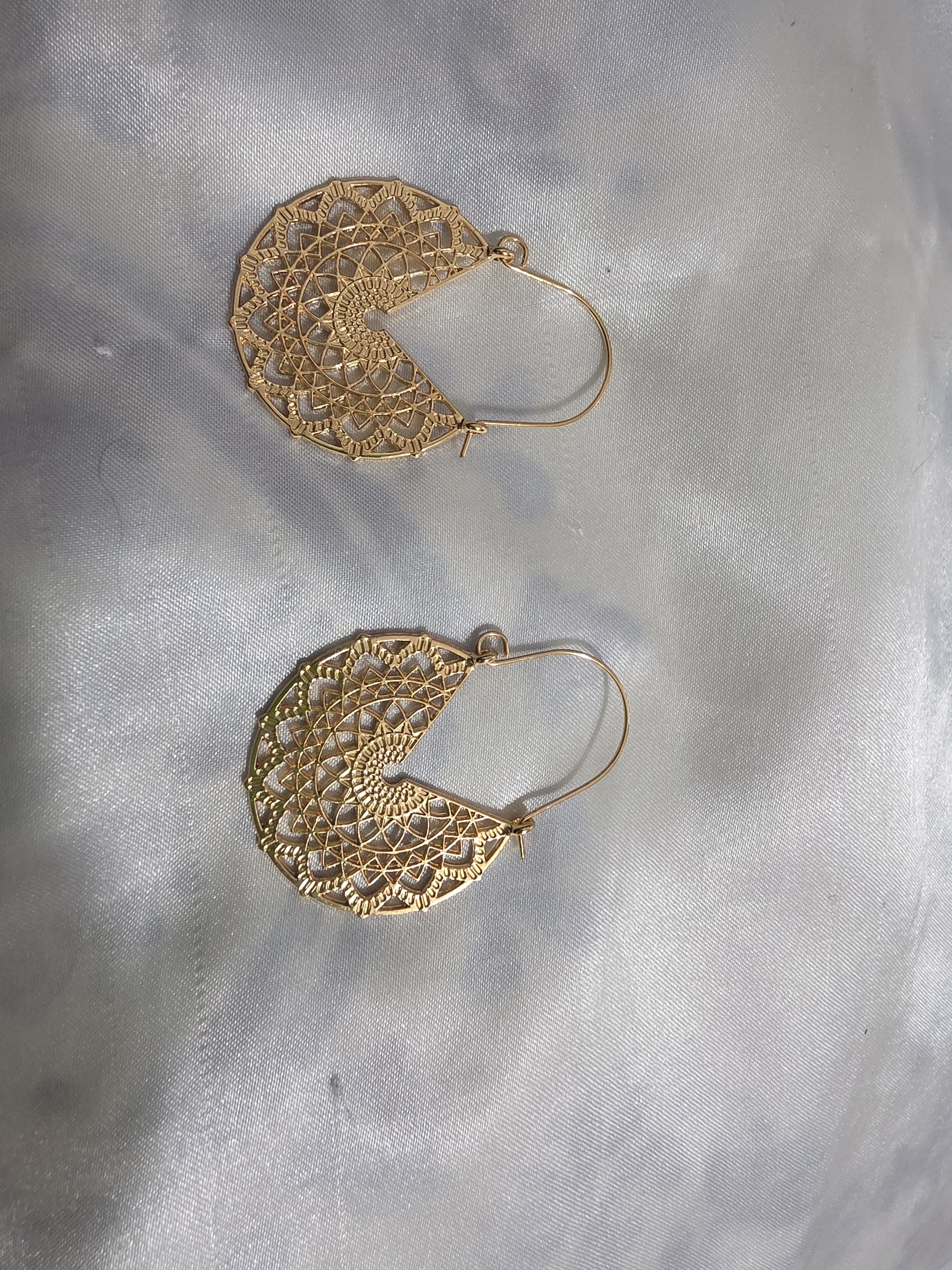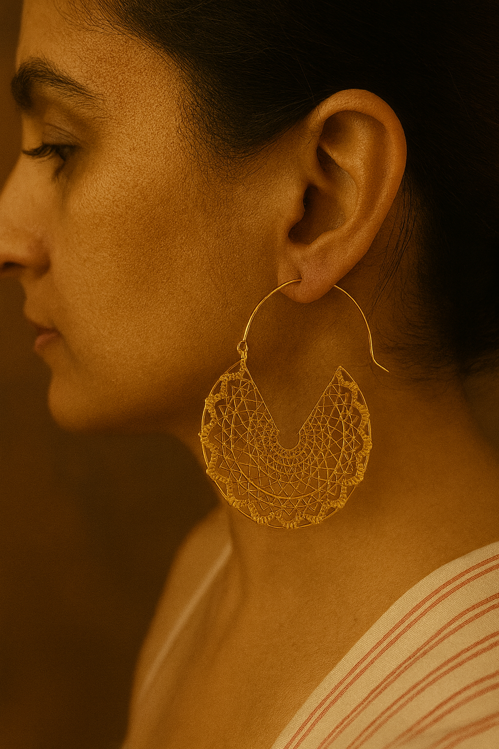 Mandala-Inspired Gold Hoop Earrings – Lightweight Ethnic Jewelry
