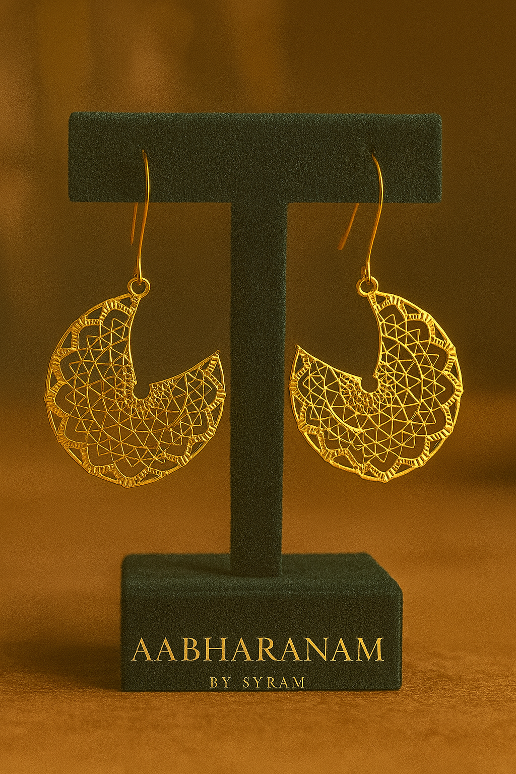 Bring elegance and artistry to your look with these mandala-inspired gold filigree hoop earrings. Designed with intricate cut-out detailing, these earrings are lightweight yet striking, making them perfect for daily wear or special occasions. The unique open-hoop design adds a modern twist to traditional ethnic jewelry.