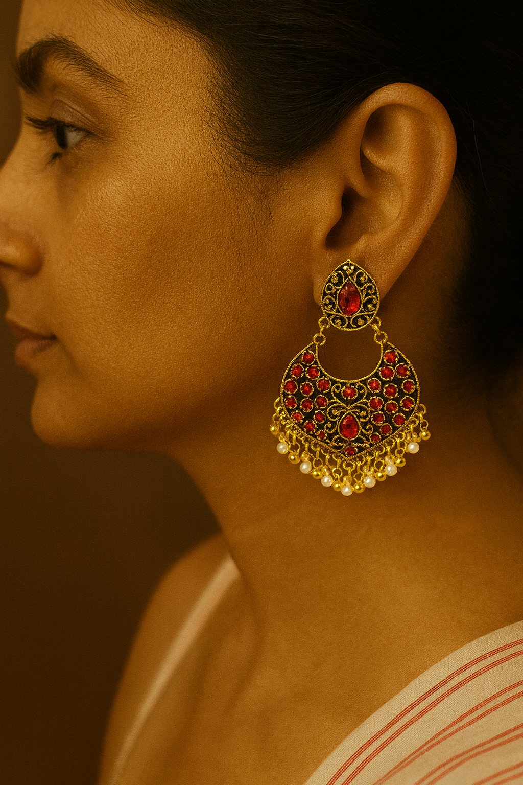 Ruby Red Chandbali Earrings with Gold Detailing – Traditional Ethnic Jewelry